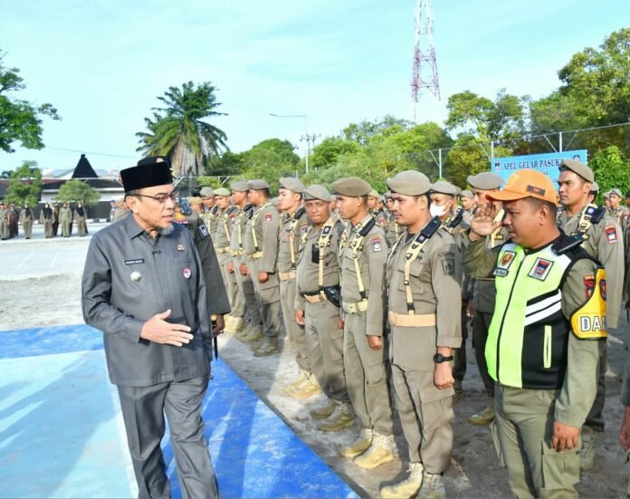 Padang, Fokuscyber – Wakil Wali Kota Padang, Maigus Nasir, memimpin Apel Gelar Pasukan dalam rangka persiapan menyambut Ramadan 1447 Hijriah di Lapangan Mako Satpol PP Kota Padang, Jumat (13/2/2026) pagi.